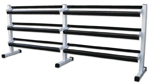 8 Foot Three-Tier Dumbbell Rack Deltech Fitness DF518 is based on the answers you're looking for. And can meet your needs as well. I bought 8 Foot Three-Tier Dumbbell Rack Deltech Fitness DF518 from the Internet. And try it out.
